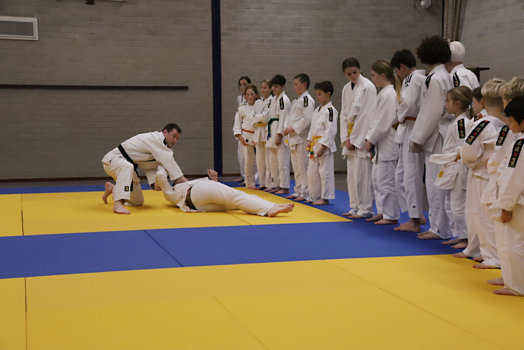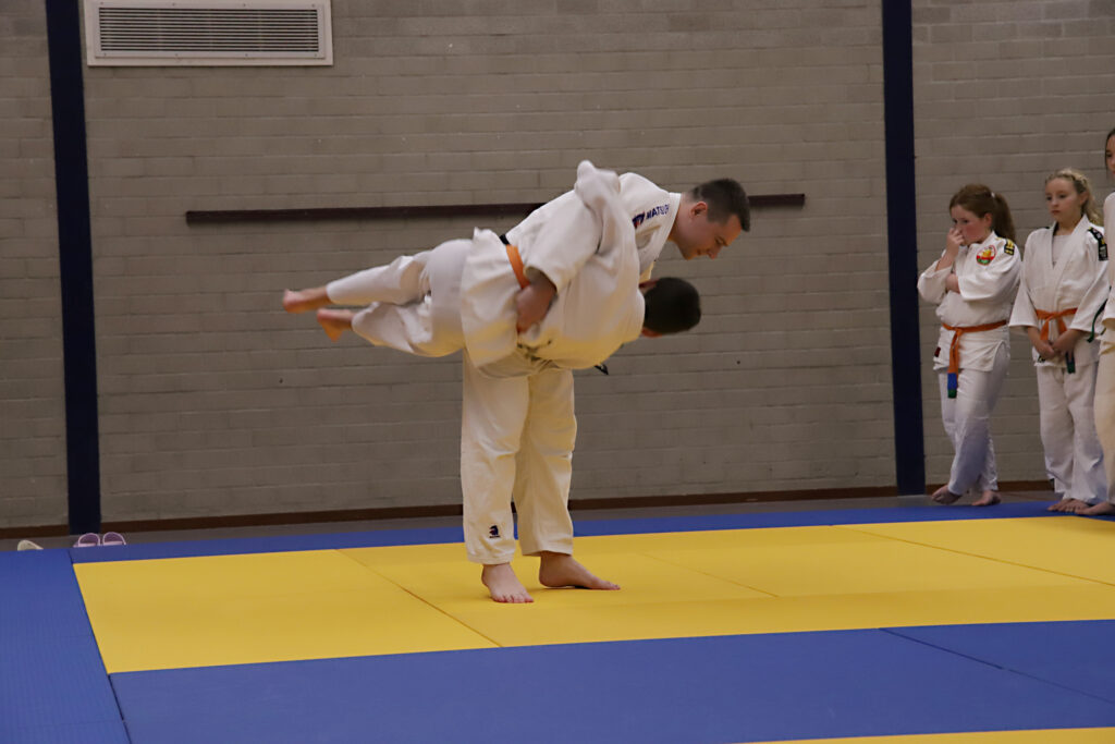 De kandidaten waren de drie gebroeders Steven, Wessel en Yorick Bouterse. Zonder vooraf te weten dat zij examen moesten doen, werden zij voor de leeuwen geworpen en moesten zij lesgeven aan de jeugd van 6 tot 14 jaar. De judoka’s staan al vele jaren ter ondersteuning voor op de mat. Dus de rijke ervaring die zij hadden opgebouwd konden zij nu goed gebruiken. De eerste opdracht bestond uit de warming-up en het valbreken, gevolgd door grond- en staande technieken. Dit gebeurde onder het toeziend oog van de examinatoren, die goed in de gaten hielden of de drie broers hun judoka’s goed begeleidden in de judosport. Ook kregen zij een individuele opdracht om te testen wat hun kennis en vaardigheden waard waren.